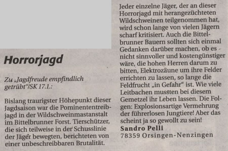 der Treibjagd aus dem "Südkurrier"