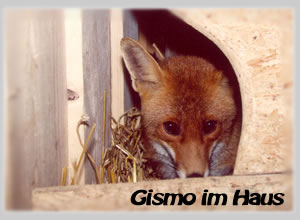 in das Fuchshaus im Gehege. >Lassen wir Gismo bis morgen